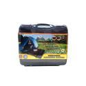 Kuchenka 2,2 walizkowa CAMP MS-2000 to turystyczna kuchenka na gaz o mocy 2,2 kW, z automatycznym zapłonem piezoelektrycznym i precyzyjną kontrolą płomienia. Napędzana jest pojemnikiem gazowym z zaworem do szybkiego montażu, wyposażona w zawór bezpieczeństwa oraz emaliowany ruszt. Konstrukcja jest lekka i wygodna, a w zestawie znajduje się walizka do przechowywania. Minimalna wentylacja wynosi 5 m³/h, a zużycie gazu 155 g/h. Produkt wykonano ze stali, kolor czarny, oferuje 24 miesiące gwarancji. Kuchenka przeznaczona jest na wyprawy turystyczne i kempingowe. Kartusz gazowy nie wchodzi w skład zestawu.