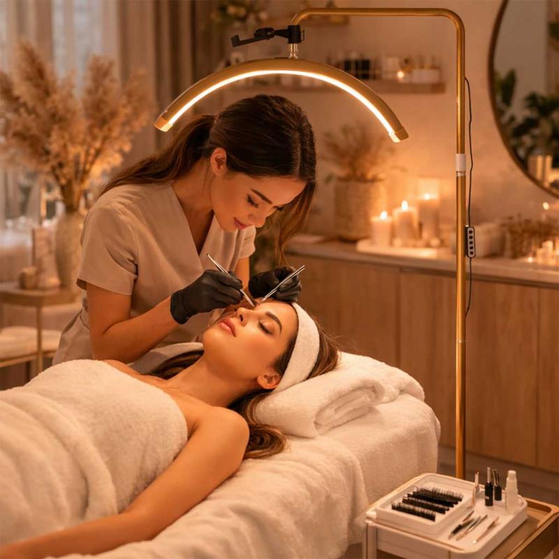 Lampa łukowa LED 36W (złota) — bezcieniowa regulowana to praktyczne rozwiązanie dla stylistki rzęs, które ułatwia precyzyjną pracę i zmniejsza zmęczenie wzroku, zapewniając stabilne, równomierne oświetlenie stanowiska. Dzięki regulacji barwy i jasności szybko dopasujesz warunki pracy do klientki i pory dnia.