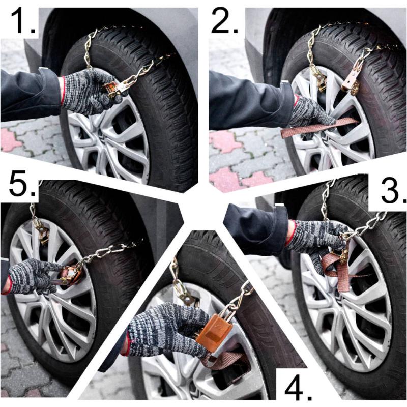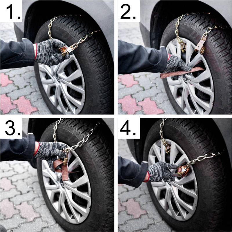 Dzięki możliwości regulacji długości każdy łańcuch można precyzyjnie dopasować do rozmiaru koła, co ułatwia szybki montaż nawet w trudnych warunkach pogodowych. Zamontowanie ich na kołach pojazdu znacznie redukuje ryzyko poślizgu i zapobiega utknięciu w głębokim śniegu, co bywa uciążliwe podczas rodzinnych wyjazdów zimowych lub dojazdów do pracy.