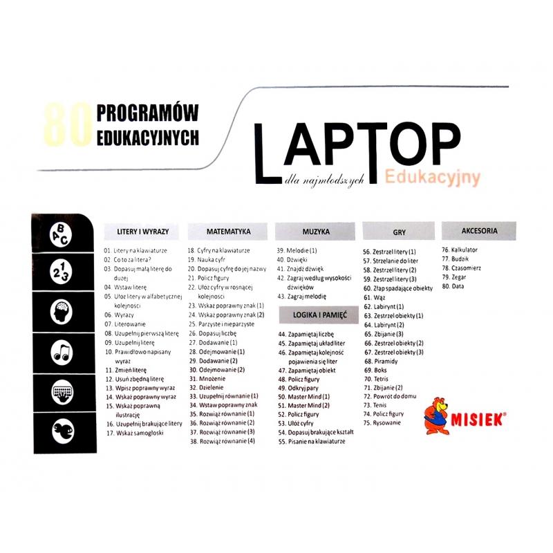LAPTOP EDUKACYJNY 80 PROGRAMÓW LITERY MATEMATYKA GRY G2