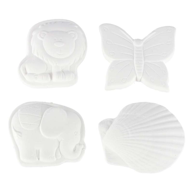 - Figurki gipsowe do ozdabiania, które można pomalować stworzonymi barwami, co dodaje wymiar przestrzenności zabawie
