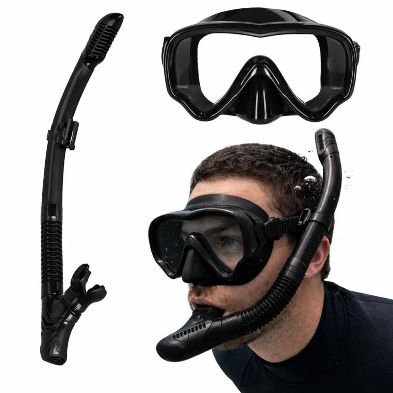 Maska do snurkowania okulary rurka fajka zestaw czarny