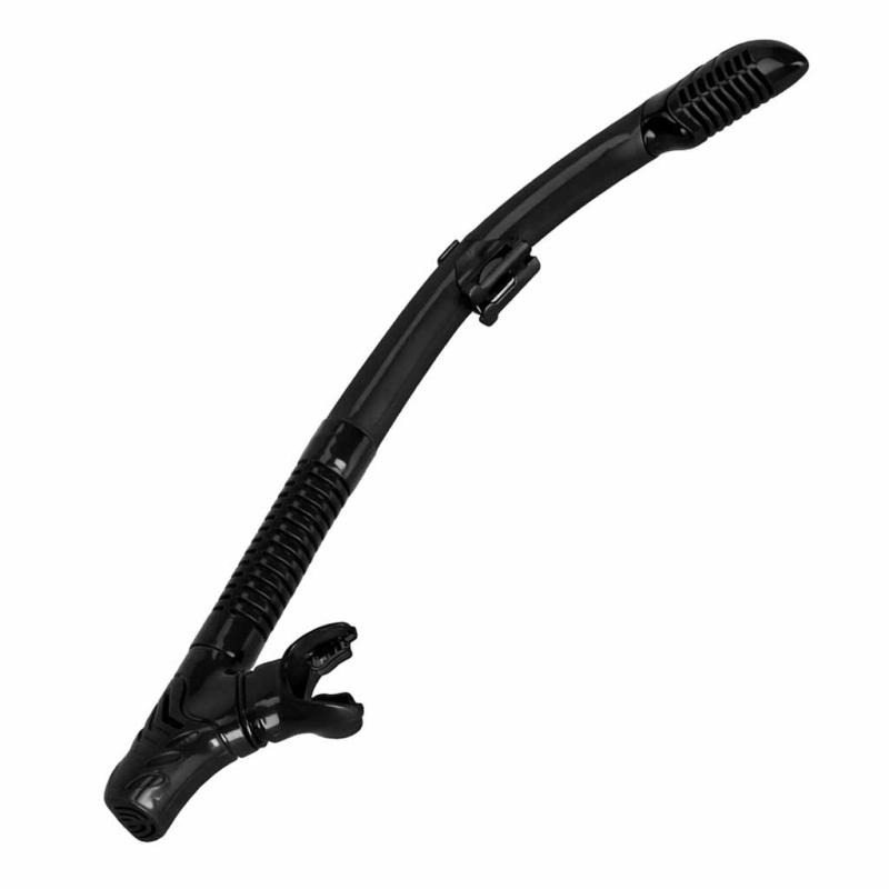 Dołączona fajka wyposażona jest w system suchej rurki, który skutecznie ogranicza przedostawanie się wody do ustnika podczas falowania lub nagłych ruchów. W konstrukcji zastosowano korpus rurki z poliwęglanu oraz ustnik/kolanko z płynnego silikonu, co łączy sztywność potrzebną do utrzymania kształtu z komfortem kontaktu z ustami.
