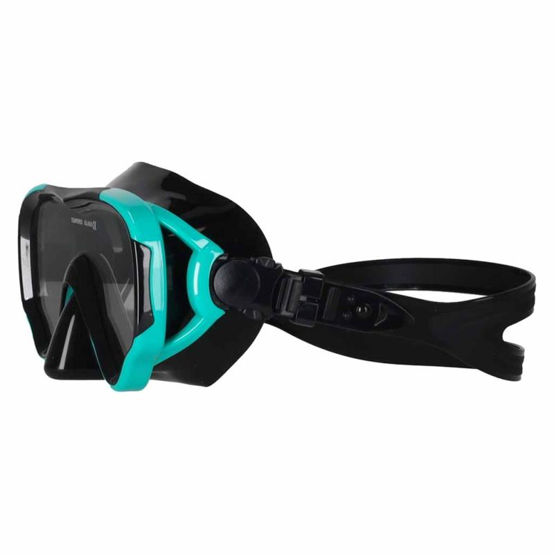 Panoramiczna szyba tej maski została zaprojektowana tak, by maksymalnie rozszerzyć pole widzenia — pozwala to na obserwację raf, ryb i detali pod wodą bez efektu „tunelu”. Szyba wykonana jest ze szkła hartowanego o grubości 4 mm, co zapewnia czytelny obraz i większą odporność na zarysowania w codziennym użytkowaniu.