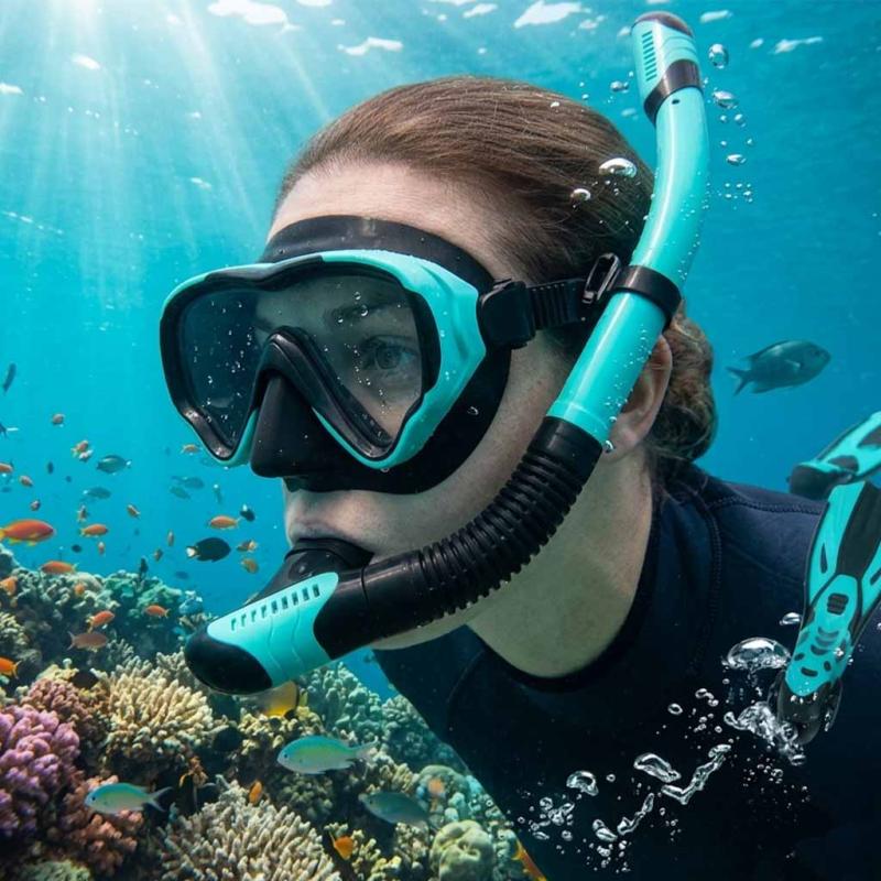 Dzięki systemowi suchej fajki ryzyko przedostania się wody jest ograniczone, ale jeśli rurka się napełni, użyj zaworu spustowego, aby szybko usunąć wodę, i wykonaj spokojne wyrównanie oddechu na powierzchni. Upewnij się, że maska jest dobrze dopasowana i pasek nie jest zbyt luźny — szczelne, lecz komfortowe dopasowanie minimalizuje przeciekanie. W razie potrzeby praktykuj opróżnianie rurki na spokojnej wodzie, zanim wybierzesz się na dłuższe sesje snorkelowe.