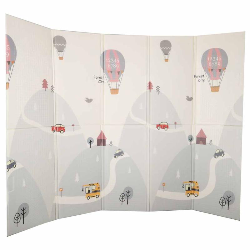 Mata piankowa Balony-Ulica składana 150 × 200 × 1 cm to praktyczne podłoże do zabawy, nauki i pierwszych kroków — rozkładasz ją w pokoju dziecka, a dzięki miękkiemu XPE i antypoślizgowej powierzchni maluch zyskuje bezpieczną przestrzeń do ruchu. Dwustronny wzór z ulicą i balonami pobudza wyobraźnię, a jednocześnie ułatwia sprzątanie i przechowywanie.