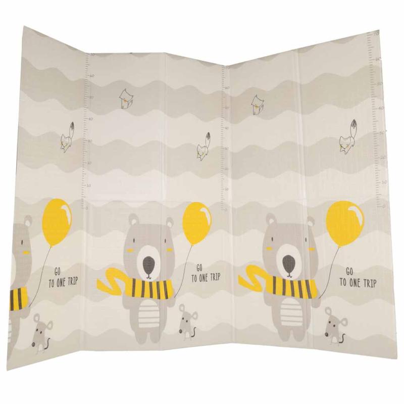 Mata edukacyjna Drzewa i Misie to składana, dwustronna powierzchnia zaprojektowana z myślą o codziennej aktywności najmłodszych. Wykonana z pianki XPE oferuje miękkość i stabilne podparcie podczas raczkowania, turlania czy pierwszych kroków, a chropowata, antypoślizgowa struktura poprawia przyczepność, zmniejszając ryzyko poślizgnięć.