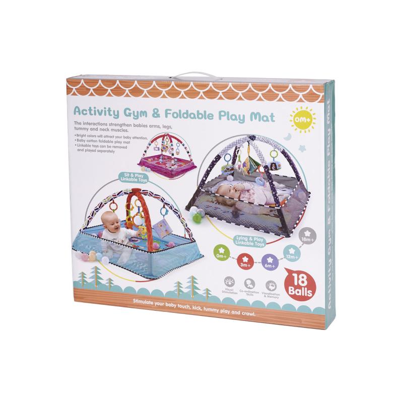 Po zdjęciu pałąków oraz siateczki mata zamienia się w izolację od zimnego podłoża, znakomicie sprawdzając się jako miękka podłoga do zabaw. Dołączone grzechotki i książeczka z szeleszczącymi stronami działają stymulująco na rozwijające się zmysły wzroku, słuchu i dotyku, jednocześnie wprowadzając dziecko w świat kształtów i barw.