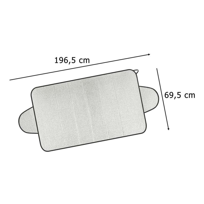 Mata osłona na szybę antyszronowa przeciwsłoneczna samochodowa o wymiarach 196,5 × 69,5 cm to praktyczne zabezpieczenie przed mrozem i nadmiernym nagrzewaniem auta. Wykonana z grubego poliestrowego materiału o srebrnym kolorze, posiada warstwę termoizolacyjną, która chroni szybę przed śniegiem, lodem oraz promieniowaniem słonecznym. Osłona jest lekka, łatwa do montażu na zewnątrz szyby poprzez przytrzaśnięcie drzwiami, co zapobiega jej zerwaniu w czasie wiatru. Po zabrudzeniu wystarczy przetrzeć wilgotną ściereczką. To funkcjonalny dodatek zwiększający komfort użytkowania samochodu niezależnie od warunków pogodowych.