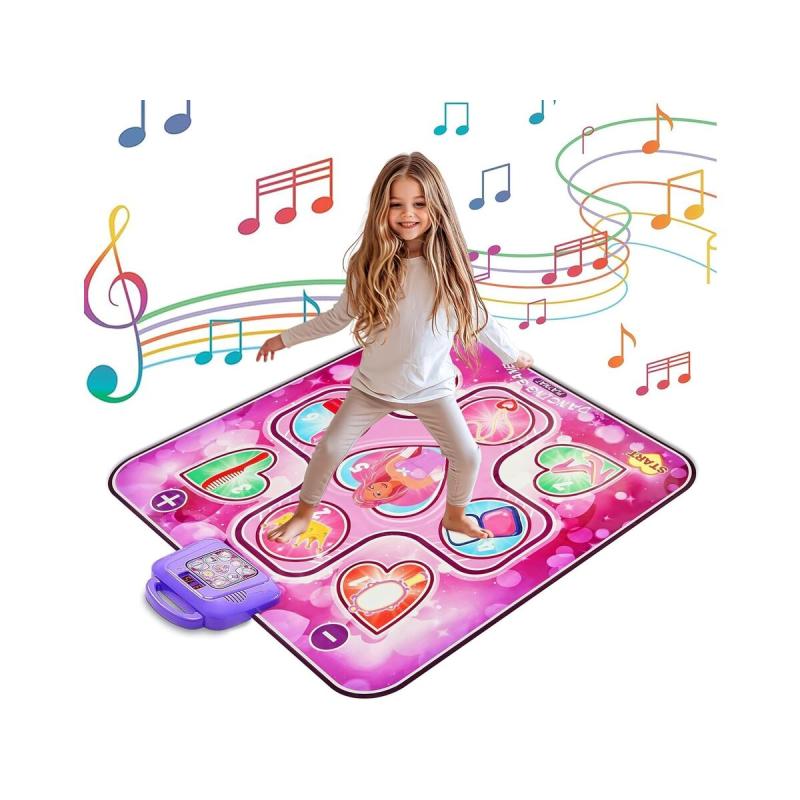 Mata taneczna muzyczna z 6 trybami interaktywnymi, wymiarami 108 × 90 cm oraz antypoślizgowym i wodoodpornym materiałem. Urządzenie posiada efekty świetlne i dźwiękowe oraz regulację głośności, które urozmaicają zabawę i wspierają rozwój koordynacji ruchowej dziecka. Dostępne tryby obejmują wyzwania taneczne, quizy punktowane, występy muzyczne z 10 utworami oraz tryb pamięciowy. Mata zasilana jest trzema bateriami AA (brak w zestawie) i jest łatwa w czyszczeniu. Ten produkt pozwala na aktywną zabawę oraz zachęca dzieci do ruchu i kreatywności poprzez taniec i muzykę.