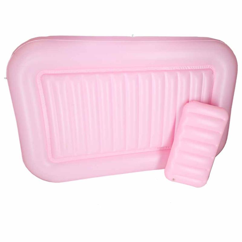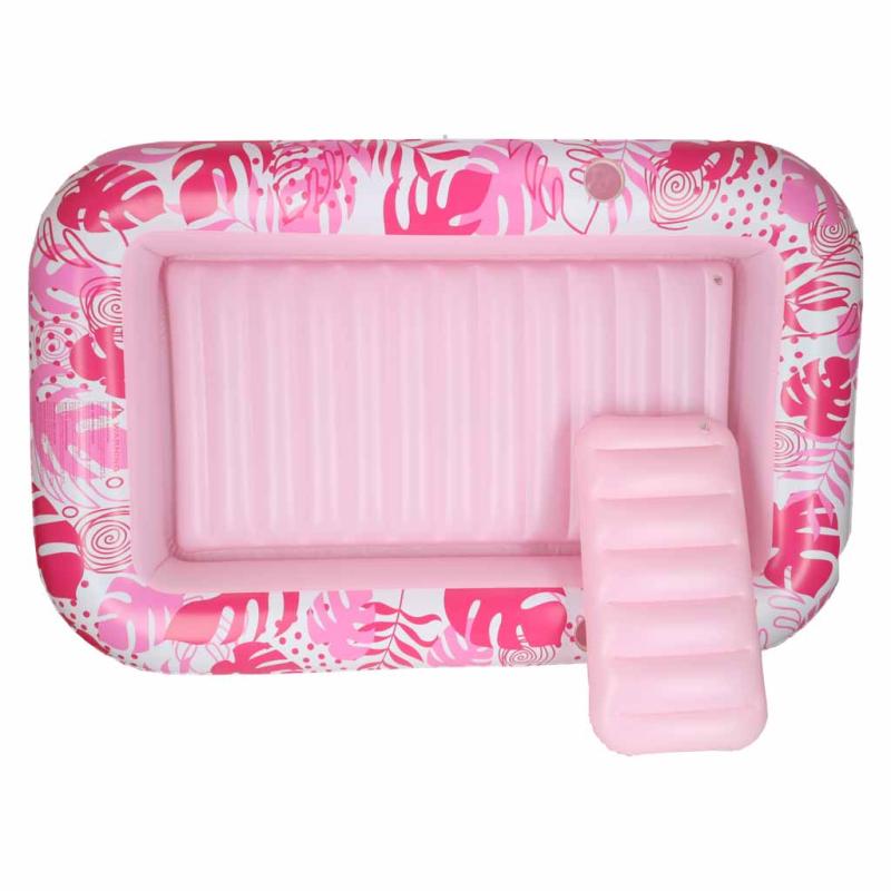 Materac dmuchany z poduszką 175 × 115 × 24 cm, kolor różowy i biały, maks. obciążenie do 100 kg — lekki i stylowy sprzęt plażowy idealny na basen i jezioro. Zapewnia wygodne leżenie lub półsiedzenie dzięki dmuchanej poduszce i stabilnym rantom; ma też dwa uchwyty na napoje dla komfortu. Wykonany z PVC, grubość materiału 0,25 mm, waga po złożeniu 2,2 kg; wymiary poduszki 64 × 34 × 13 cm i strefa leżenia 129 × 69 cm. Szybkie pompowanie, przenośność i solidna konstrukcja oznaczają relaks bez stresu podczas wakacyjnego wypoczynku.
