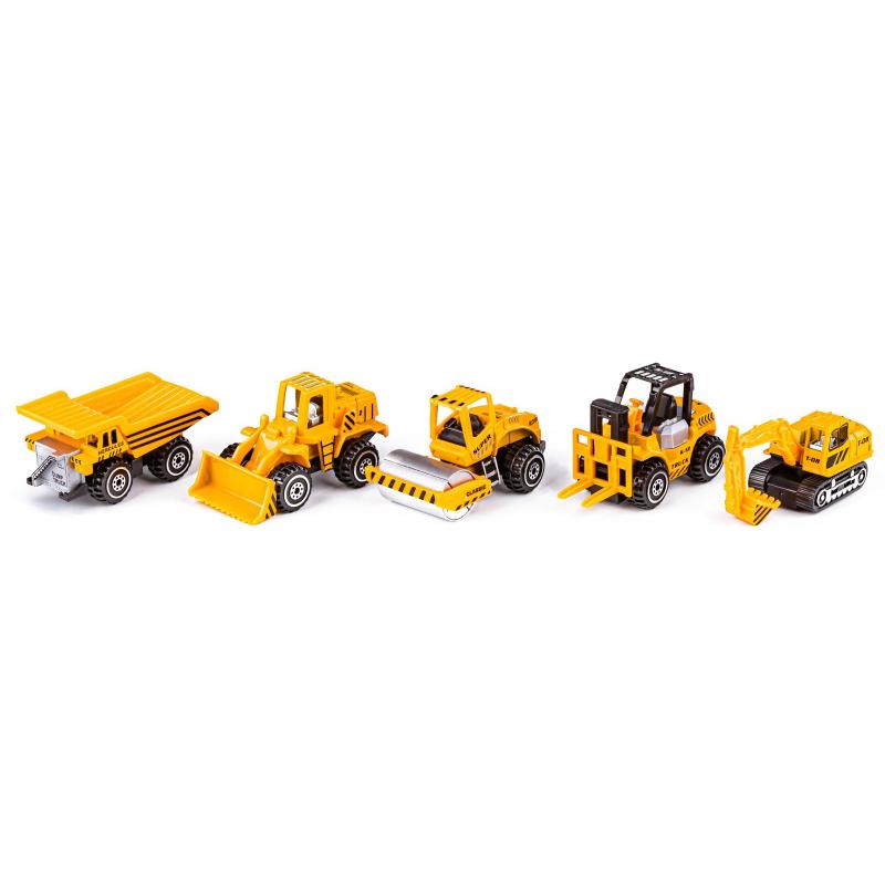 - Zawartość zestawu: 5 pojazdów budowlanych