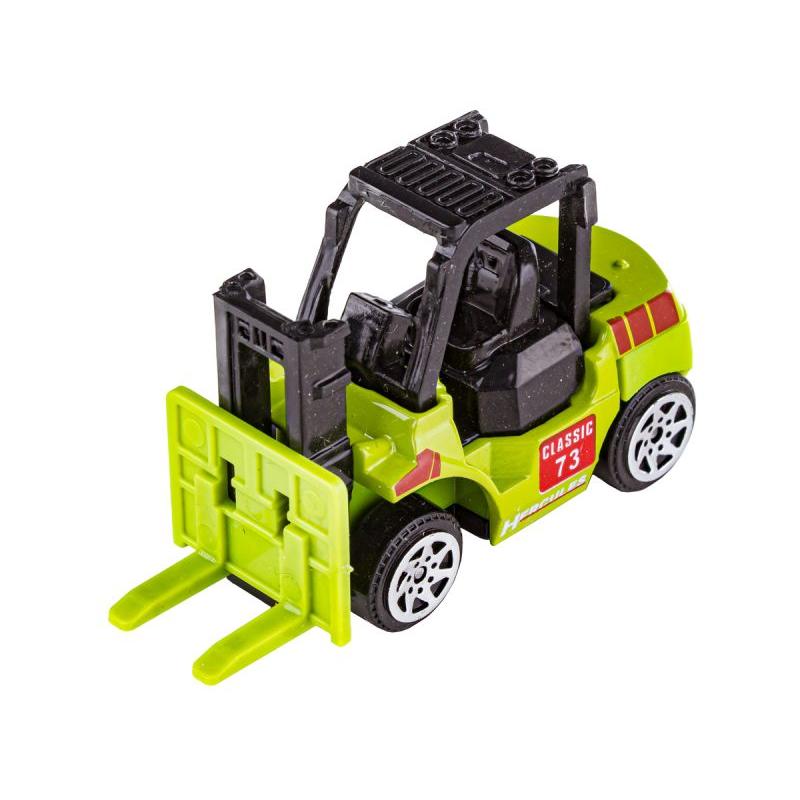 W zestawie znajdziesz sześć różnorodnych pojazdów: koparkę, spychacz, wywrotkę, walec, betoniarkę oraz wózek widłowy. Każdy model odzwierciedla charakterystyczne cechy maszyn budowlanych, co pozwala na tworzenie scenariuszy konstrukcyjnych — od wykopów i nasypów po przewóz materiałów czy ubijanie podłoża. Realistyczne wzornictwo i zielona kolorystyka sprawiają, że modele są atrakcyjne zarówno dla młodszych miłośników pojazdów, jak i kolekcjonerów.