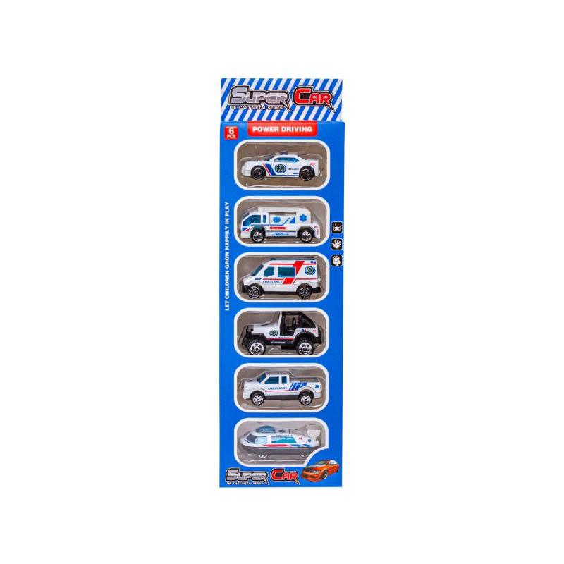 Metalowe Pojazdy Uprzywilejowane, Auta, Resoraki 6 Sztuk Zestaw 1:64 POGOTOWIE, AMBULANS