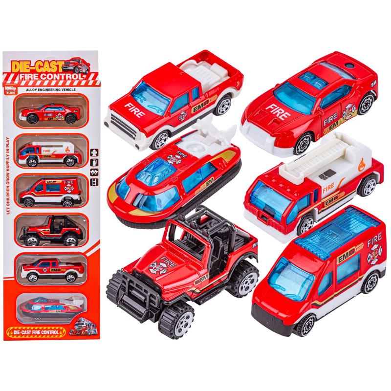 Metalowe Pojazdy Uprzywilejowane, Auta, Resoraki 6 Sztuk Zestaw 1:64 STRAŻ POŻARNA, WÓZ STRAŻACKI