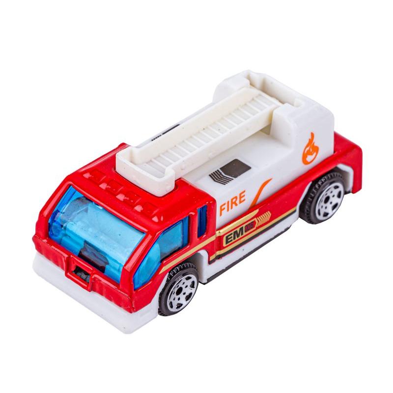 Dominujący kolor zestawu to czerwony, co nadaje mu charakterystyczny, strażacki wygląd i ułatwia rozpoznawanie pojazdów podczas zabawy. Dzięki kompaktowym rozmiarom modele łatwo zabrać ze sobą, a oryginalne opakowanie dodatkowo chroni je podczas transportu.