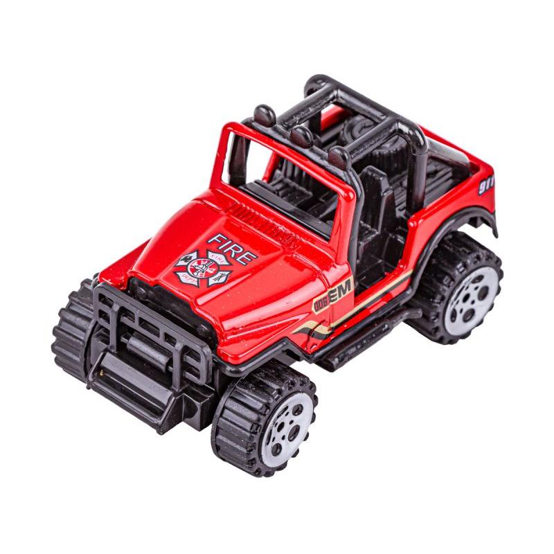 Zestaw zawiera sześć różnorodnych pojazdów: ciężarówkę z ruchomą drabiną, ambulans ratunkowy, jeepa, pojazd terenowy typu pick-up, samochód osobowy oraz… poduszkowiec. Dzięki takiemu doborowi dzieci mogą odgrywać scenki miejskie i terenowe — od gaszenia pożarów, przez ratownictwo medyczne, aż po akcje na wodzie przy użyciu poduszkowca. Oryginalne opakowanie ułatwia przechowywanie i zabranie zestawu na wyjazd.