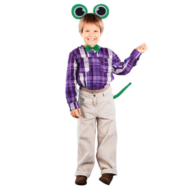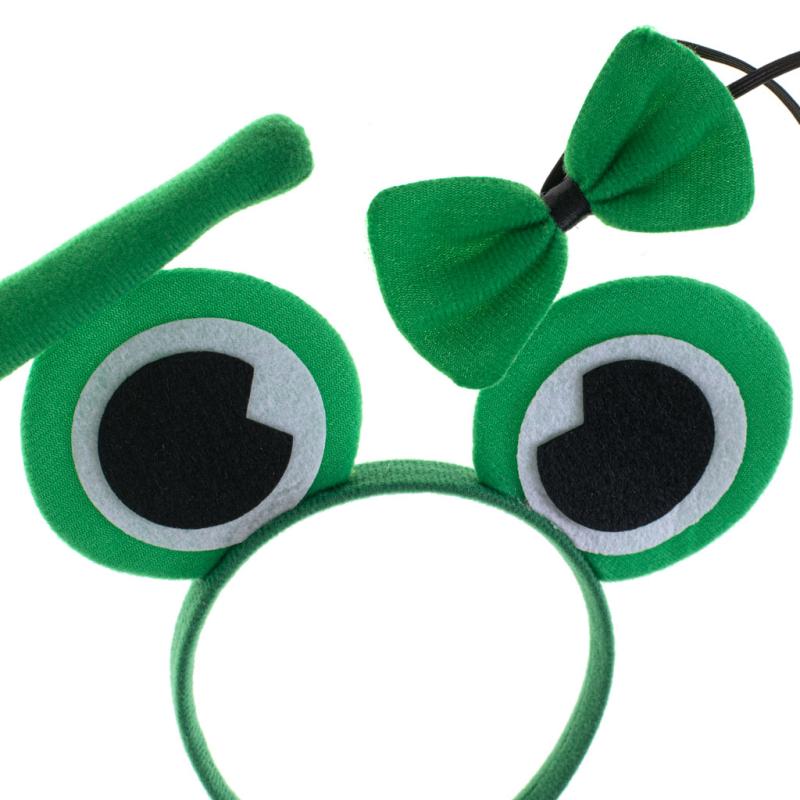 Ten oryginalny zestaw to połączenie trzech podstawowych elementów: zielonej opaski z usztywnianymi oczkami, miękkiej muszki oraz ogonka o długości 26,5 cm. Dzięki temu dziecko z łatwością przyjmie rolę skocznej żabki, co rozwija wyobraźnię i zachęca do kreatywnej zabawy zarówno podczas imprez, jak i na co dzień.