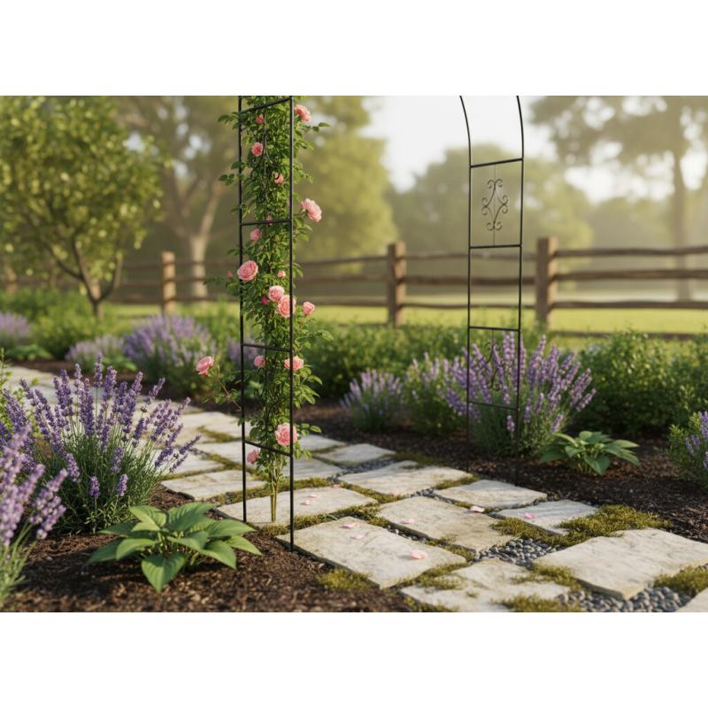 Pergola świetnie nadaje się do róż pnących, bluszczu, powojników czy winobluszczu — roślin o średnim i silnym pokroju pędów, które potrzebują podpory do wzrostu. Dzięki taśmie 1cm × 1m łatwo przywiązać młode pędy i prowadzić je po konstrukcji, a stabilna stalowa rama uniesie nawet bujniejsze obsadzenia przy prawidłowym montażu.