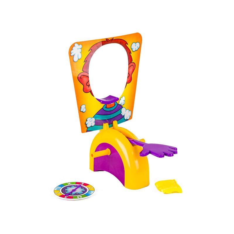 Pie Face to zabawa polegająca na zakładaniu głowy w szablon z otworem i kolejnych próbach kręcenia wskazówką na tarczy — liczba obrotów jest losowana, a po każdym ruchu istnieje ryzyko, że łapka „pacnie” twarz. Można użyć bitej śmietany dla efektu pysznej katastrofy lub mokrej gąbki dla czystszej wersji, a gąbka jest częścią zestawu, więc od razu możecie zacząć grać.