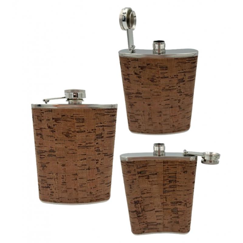 Metalowa konstrukcja piersiówki została powleczona korkiem w ciemnym, brązowym odcieniu, co nadaje jej subtelny i wyrafinowany wygląd. Dzięki zastosowanym materiałom, zarówno estetyka, jak i trwałość idą w parze. Kompaktowe wymiary – około 12 x 9,5 x 2 cm – czynią ją łatwą w przechowywaniu i transporcie, a jednocześnie oferują odpowiednią pojemność napoju.