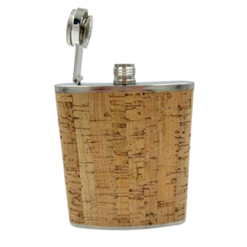 Metalowa konstrukcja gwarantuje solidność, a kształt dopasowany jest ergonomicznie do dłoni, co wpływa na wygodę trzymania. Powleczenie jasnym korkiem to nie tylko estetyka, lecz także zabezpieczenie powierzchni przed zarysowaniami i zapewnienie pewnego chwytu. Dzięki temu piersiówka łączy w sobie estetykę z praktycznym zastosowaniem na co dzień i podczas wyjazdów.