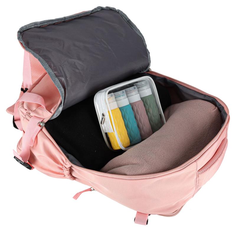 Funkcjonalność w podróży – różowy plecak turystyczny 45x30 cm