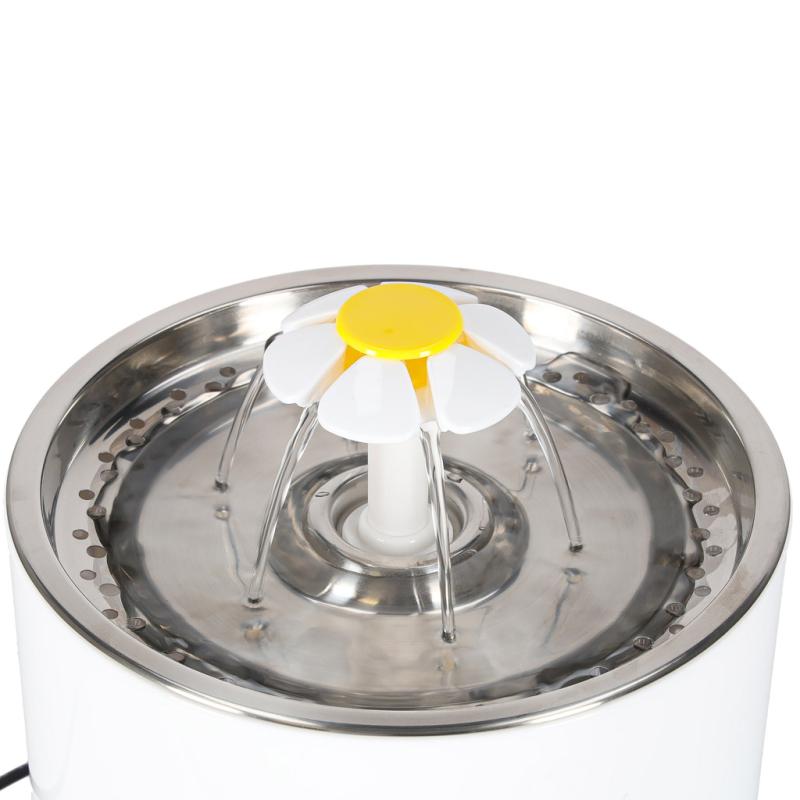 Automatyczne poidło o pojemności 2,4 litra zostało wykonane z trwałego plastiku i stali nierdzewnej, co zapewnia odporność na uszkodzenia oraz łatwość utrzymania w czystości. Model wyposażony jest w wymienny filtr z aktywnym węglem (niezawarty w zestawie), który pozwala skutecznie oczyszczać wodę z zanieczyszczeń, co przekłada się na zdrowie pupila.