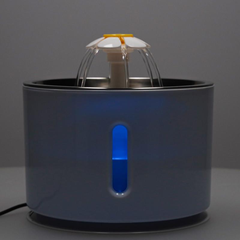 Poidełko fontanna dla psa kota o pojemności 2,4 l wykonane z plastiku i stali nierdzewnej, zasilane przewodem USB 5 V i mocą 1,5 W, wyposażone w podświetlenie LED na niebiesko. Wymiary całkowite 18 × 20 × 13 cm, waga 0,6 kg, długość kabla 150 cm. Filtr wymienny z aktywnym węglem (brak w zestawie). Produkt zapakowany w kartonowe opakowanie o wymiarach 20 × 20 × 15 cm i wadze 0,71 kg. Przeznaczony do użytku jako automatyczne poidło dla psów i kotów, zapewnia czystą wodę dzięki filtrowi czyszczącemu.