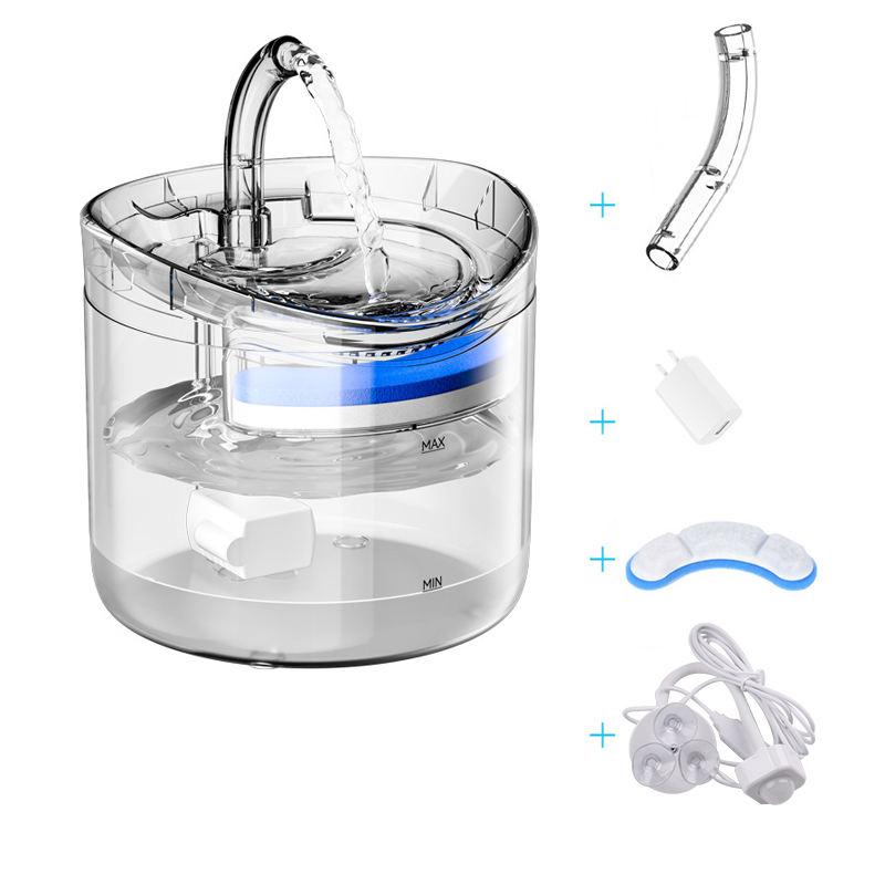 Urządzenie wyposażono w cichą pompę i wymienny filtr z aktywnym węglem, dzięki czemu dostarcza świeżą i czystą wodę. Delikatny szum pompy nie rozprasza w domu ani nie stresuje pupili. Dzięki transparentnemu ciemnoszaremu korpusowi poidełka można łatwo kontrolować poziom wody bez konieczności rozkładania urządzenia.