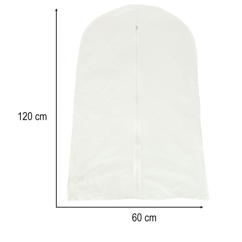 Pokrowiec na ubrania garnitur przezroczysty o wymiarach 60 × 120 cm wykonany z poliestru skutecznie chroni odzież przed kurzem i zabrudzeniami. Wyposażony w suwak, umożliwia wygodne wkładanie i wyjmowanie ubrań. Transparentny materiał umożliwia szybkie rozpoznanie zawartości bez otwierania pokrowca, a otwór na górze pozwala na łatwe zawieszenie na wieszaku. Ten pokrowiec jest przeznaczony do przechowywania garniturów, sukienek, koszul i płaszczy zarówno w domu, jak i w podróży, zapewniając odzieży długotrwałą ochronę oraz utrzymanie świeżości. Produkt jest praktycznym dodatkiem do organizacji garderoby.