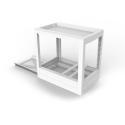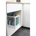 Ta uniwersalna półka została zaprojektowana z myślą o łatwym montażu – wystarczy przykręcić dwie prowadnice do dna szafki, które umożliwiają swobodne przesuwanie całej konstrukcji. Dzięki szerokim półkom można wygodnie przechowywać różnorodne przedmioty, takie jak środki czystości czy drobne narzędzia kuchenne. Biały kolor sprawia, że półka harmonijnie wpisuje się w design większości wnętrz, a prosty, kompaktowy kształt nie zajmuje wiele miejsca.