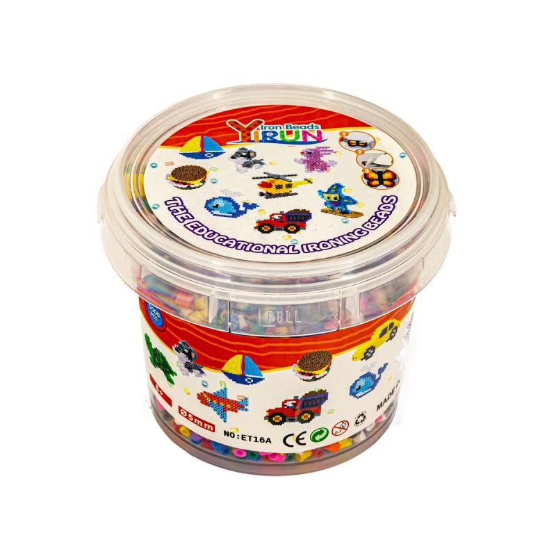 Kolorowy miks koralików pozwala na drobiazgowe dobieranie odcieni i tworzenie złożonych wzorów; każdy koralik ma przekrój 5mm, co ułatwia precyzyjne układanie i daje czytelny efekt końcowy. Dzięki wiaderku z pokrywką przechowywanie i transportowanie zestawu jest wygodne — organizacja materiałów nigdy nie była łatwiejsza.
