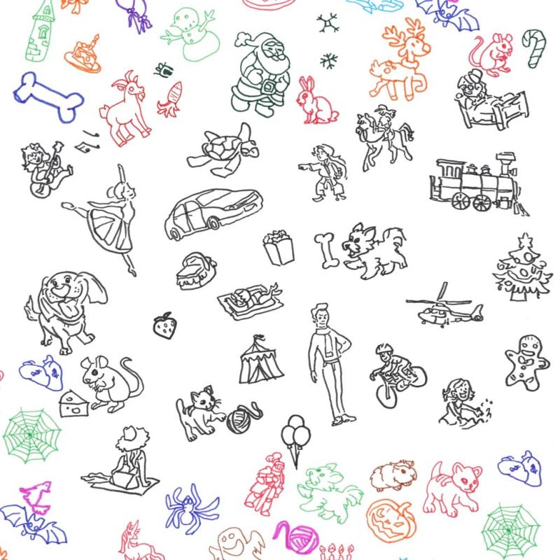 - Sześć arkuszy z obrazkami, po 12 wzorów na każdy, dają łącznie 72 motywy do odrysowania, co znacznie wydłuża czas inspirującej zabawy.