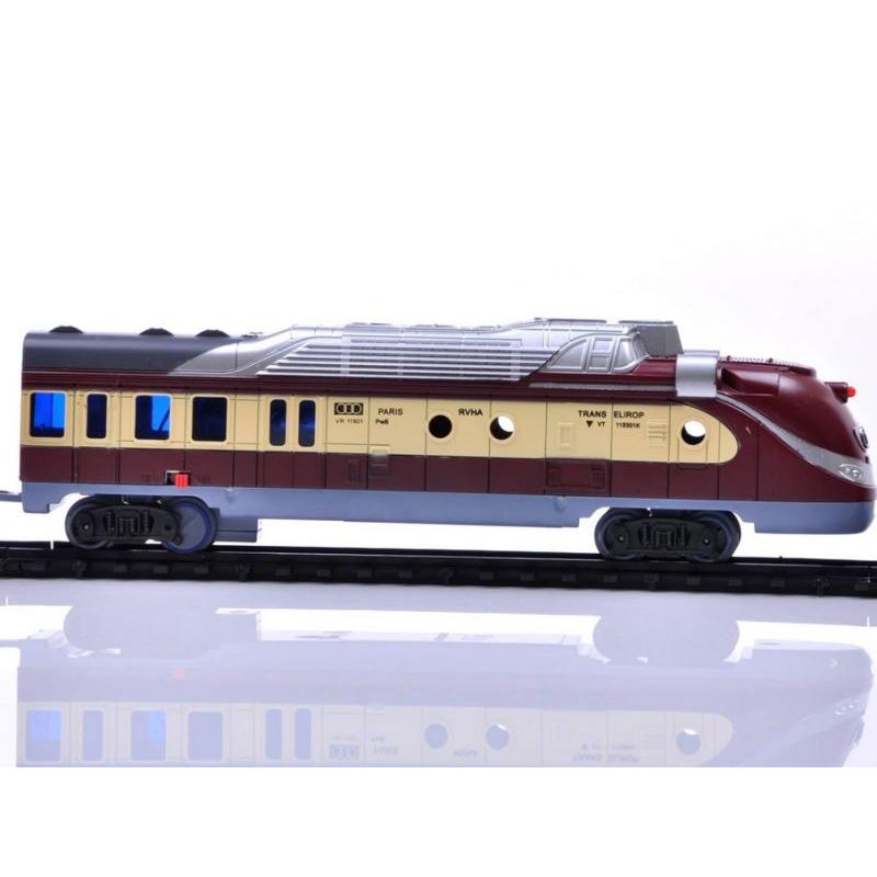 Pojazd zyskuje na autentyczności dzięki dźwiękom trąbienia i stukocie kół o szyny, które odzwierciedlają prawdziwy ruch pociągu. Czerwona dioda na przodzie lokomotywy dodatkowo sugeruje światło, co poprawia odbiór wizualny i wprowadza w klimat prawdziwej stacji kolejowej.