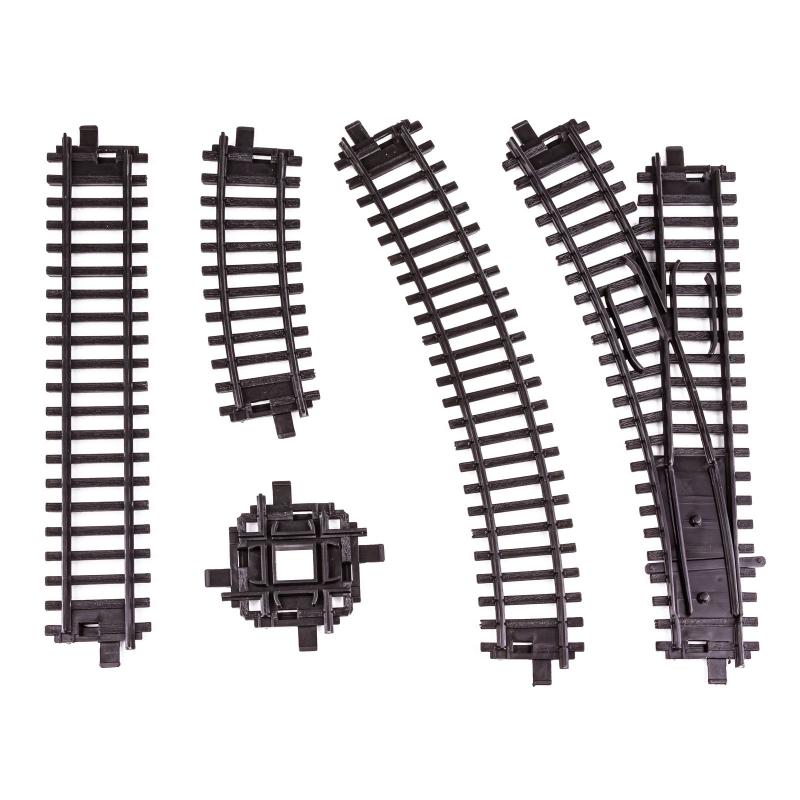 W skład zestawu wchodzi lokomotywa wraz z sześcioma wagonami, w tym dwoma pasażerskimi, dwoma kontenerowymi oraz dwoma cysternami. Takie połączenie daje szerokie pole do tworzenia realnych scenariuszy transportowych i podróżniczych, pobudzając wyobraźnię i ucząc podstaw działania kolei. Pociąg jeździ po bardzo długim torze o długości około 325 cm, który można układać w najróżniejsze konfiguracje – od klasycznych kół po efektowne ósemki czy skrzyżowania. Dzięki temu zabawa nigdy się nie nudzi.