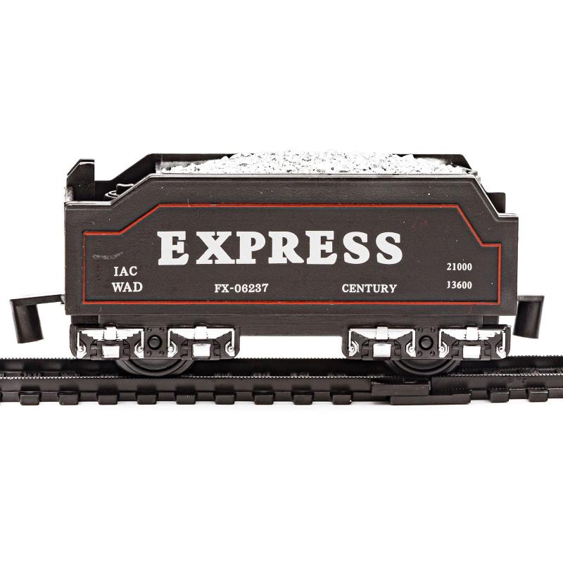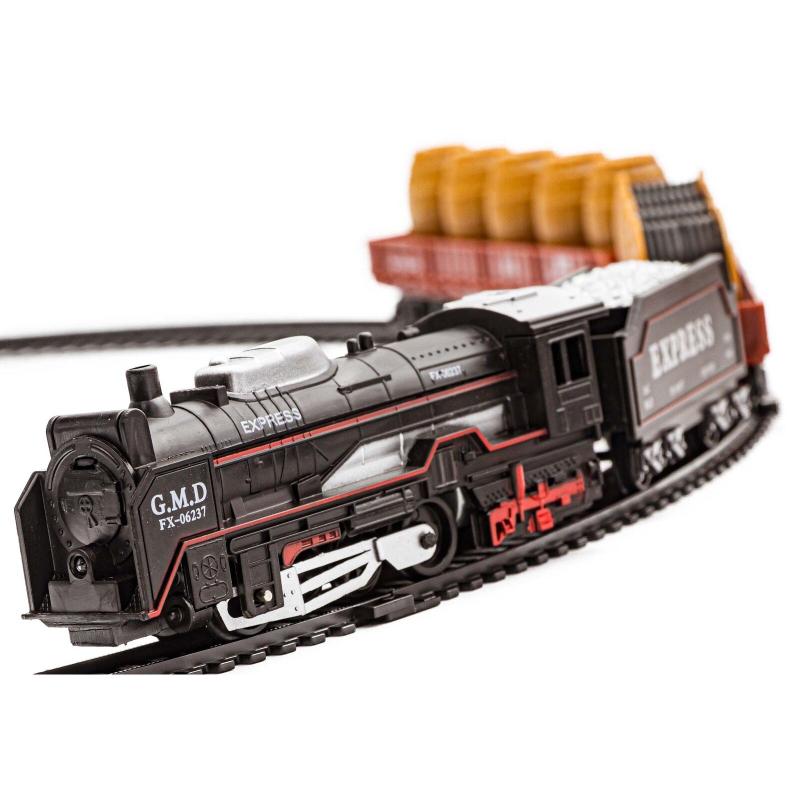 Zestaw Rail King zawiera wszystko, czego potrzeba do zabawy: tor o wymiarach 104 × 68 cm po złożeniu, precyzyjnie odwzorowaną lokomotywę oraz trzy wagony towarowe, zapakowane w oryginalne, estetyczne opakowanie. Rozkładany tor daje swobodę aranżacji trasy, a komplet wagonów pozwala na wymyślanie różnych scenariuszy transportowych — od przewozu towarów po realistyczne przejazdy przez wyobrażone krajobrazy.
