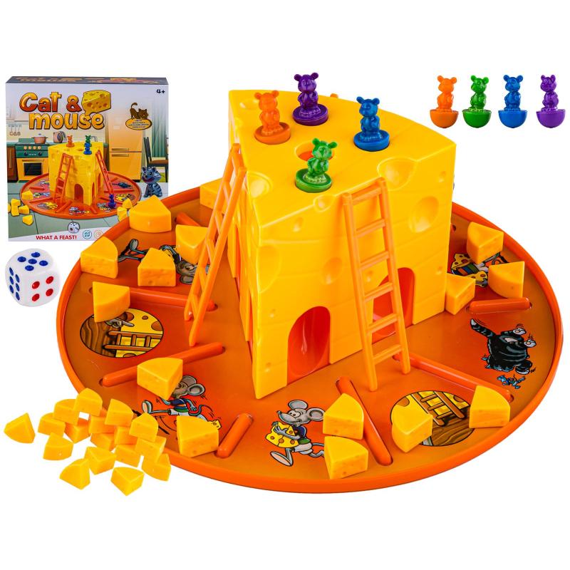 W tej wciągającej grze uczestnicy wcielają się w sprytne myszki, które próbują jak najszybciej zebrać pięć kawałków sera, zanim zdąży je upolować czujny kot Max. Plansza ze specjalnymi drabinkami oraz losowe elementy powodują, że każda rozgrywka jest pełna niespodzianek i trzymająca w napięciu do samego końca.