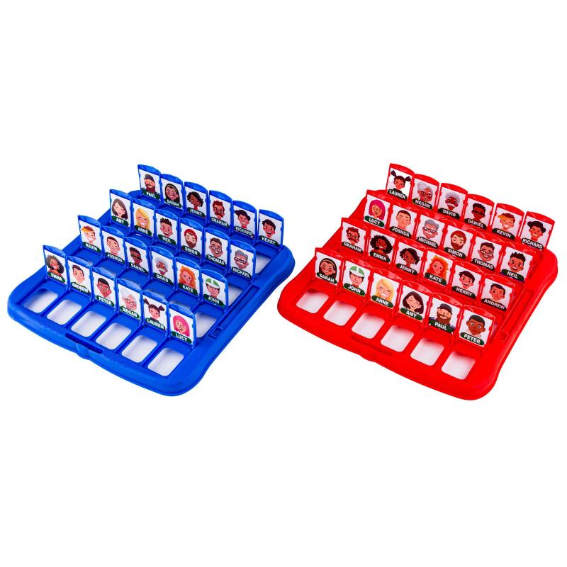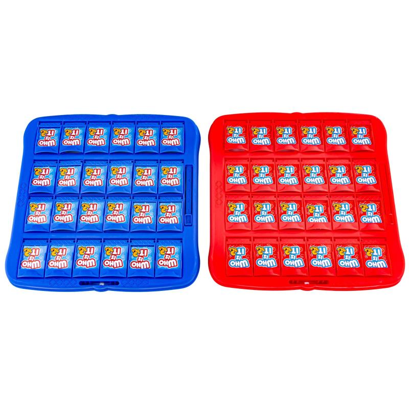 Gra pamięciowa Zgadnij Kto? – familijna gra z 2 planszami, dla dzieci powyżej 4 roku życia, plansza ok. 25 × 25 × 2 cm. Wciągająca, szybka rozgrywka dla 2 osób, polegająca na zadawaniu pytań typu TAK/NIE i eliminowaniu postaci, co trenuje koncentrację i logiczne myślenie. Zestaw zawiera 2 kolorowe plansze (czerwona i niebieska), 24 duże i 24 małe karty oraz oryginalne opakowanie; na każdej planszy jest suwaczek do punktacji. Proste zasady i duża liczba kombinacji gwarantują długie sesje bez nudy; idealna na rodzinne popołudnie lub naukę zadawania pytań i dedukcji.