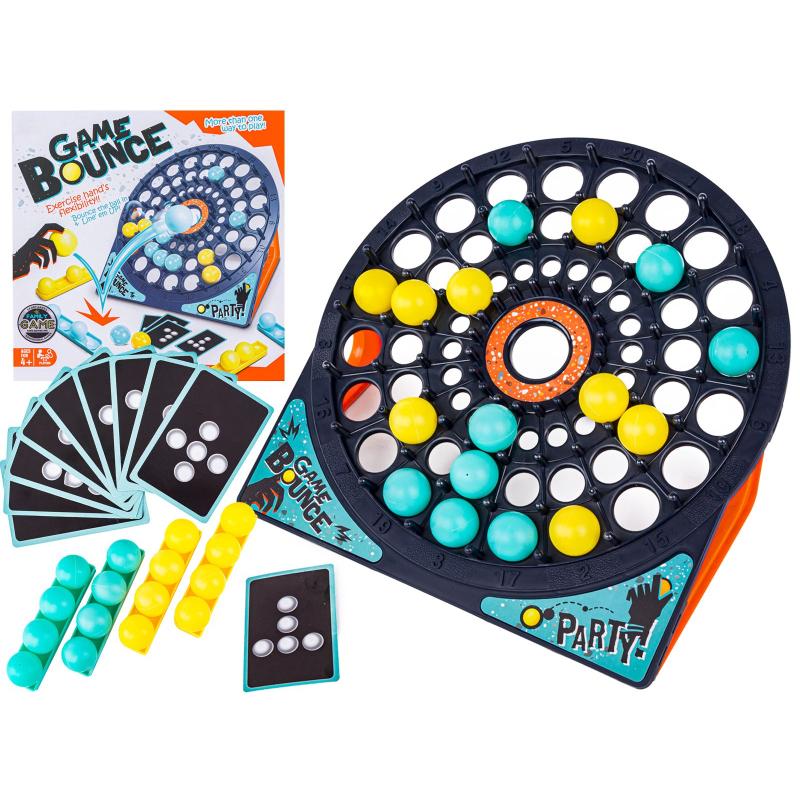 Bounce Game to układanka zręcznościowa, w której celem jest odbijanie piłeczek od podłoża tak, by wpaść nimi w odpowiednie przegródki tarczy i ułożyć wzór pokazany na wylosowanej karcie. Rozgrywka toczy się drużynowo — gracze dzielą się na dwie ekipy, każda korzysta z piłeczek w jednym kolorze, i na przemian wykonują odbicia. Zabawa rozwija cierpliwość, koordynację ręka–oko oraz taktowanie ruchu piłeczki.