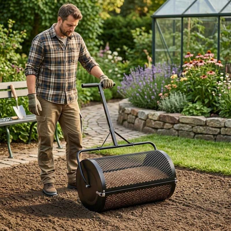 Rozsiewacz LUARO walec siatkowy — siewnik do kompostu to praktyczne narzędzie dla właścicieli trawników, którzy chcą równomiernie rozprowadzić nawozy organiczne i materiał kompostowy, oszczędzając czas podczas prac ogrodowych.