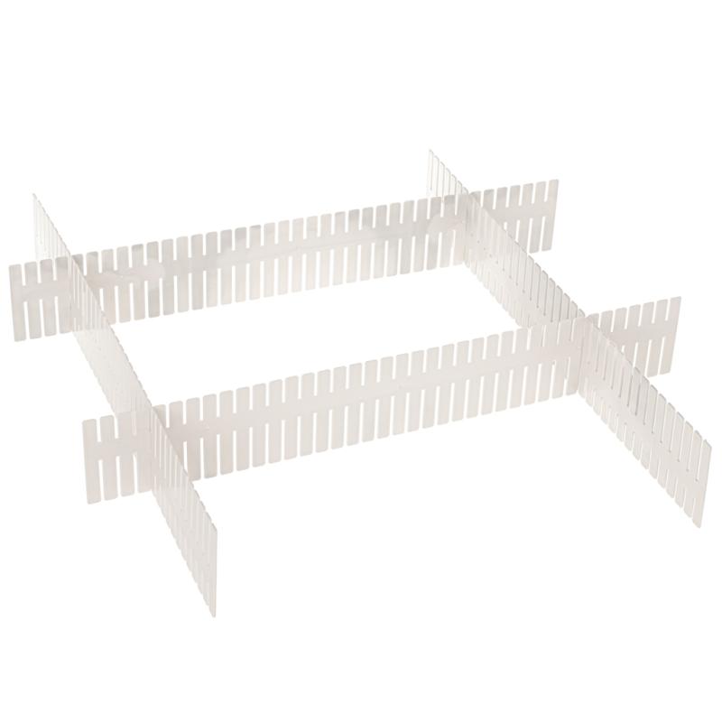 W zestawie znajdują się cztery sztuki separatorów, które można łatwo przycinać do potrzebnej długości, dzięki czemu aranżacja przegródek jest w pełni dostosowana do wymiarów szuflady oraz indywidualnych preferencji. Montaż polega jedynie na wymierzeniu i dopasowaniu elementów oraz połączeniu ich w odpowiednich miejscach, co gwarantuje stabilną konstrukcję i trwałość organizera.