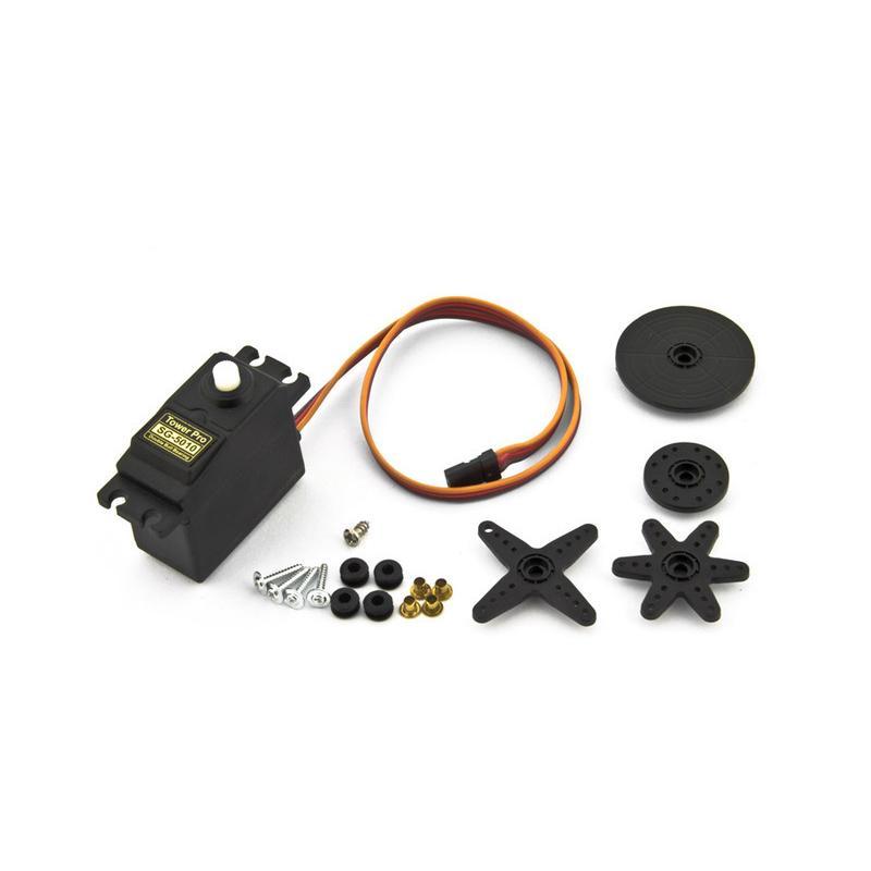 Serwomechanizm Tower Pro SG-5010 — moment 6,5 kg sprawdzi się tam, gdzie potrzebujesz niezawodnego, standardowego serwa o zwiększonej sile; idealne do modeli samochodów 1:10 i 1:8, samolotów i łodzi, dając pewne, precyzyjne sterowanie pod obciążeniem.