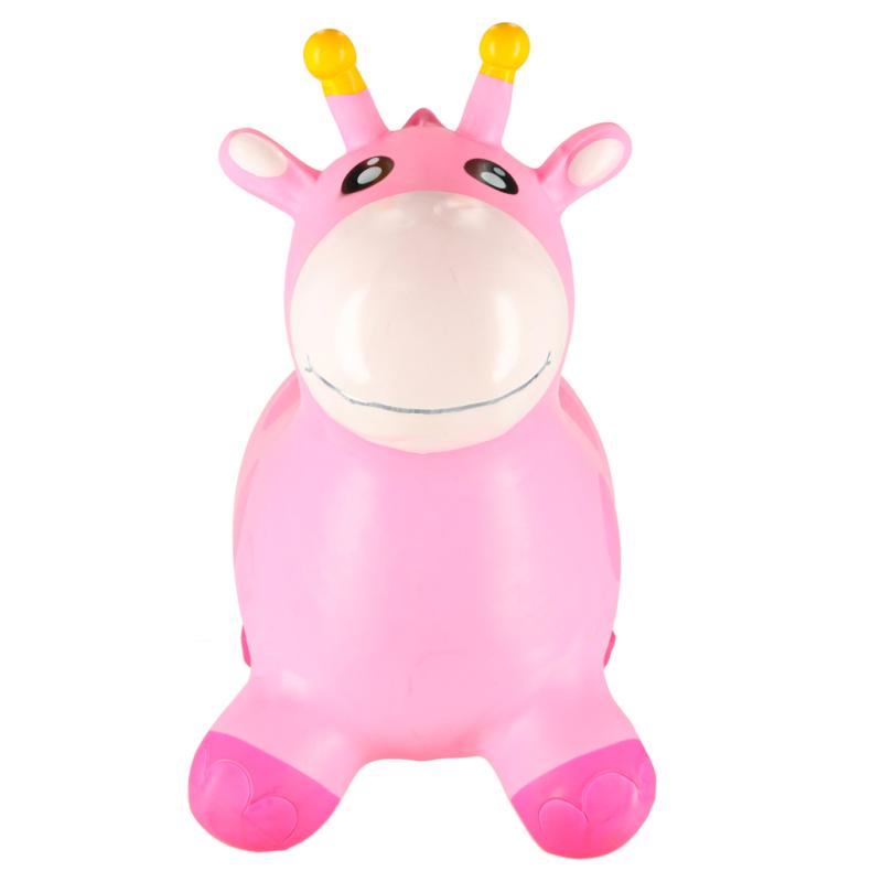 Skoczek dla dzieci do skakania z pompką gumowy różowa żyrafa
