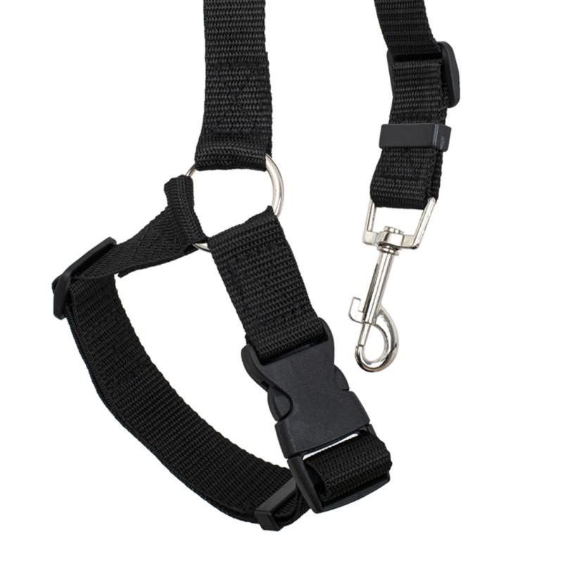 Smycz długości 45cm-80cm daje odpowiednią swobodę ruchu — pupil może wygodnie usiąść lub przytulić się do właściciela, ale nie ma możliwości swobodnego włóczenia się po samochodzie. Produkt jest dostępny w klasycznym kolorze czarnym i zapakowany w foliowe opakowanie, co ułatwia przechowywanie i dystrybucję.