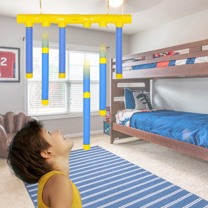 Zestaw można zawiesić pod sufitem za pomocą załączonych haczyków i sznurka, co pozwala zaangażować się w zabawę na stojąco lub w ruchu. Po włączeniu urządzenia sygnalizowanego czerwoną diodą i komendą głosową, wystarczy ponowić wciśnięcie przycisku startu, aby rozpocząć łapanie spadających pałeczek. Wygrywa osoba, która złapie ich najwięcej – proste zasady sprawiają, że zabawa jest intuicyjna i motywująca.