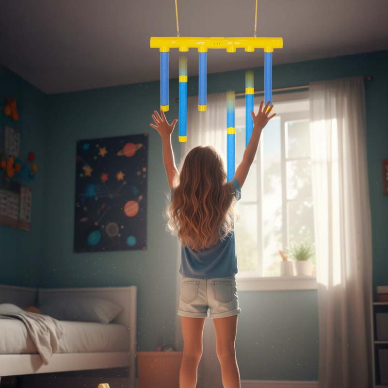 Podczas spotkań w domu czy na tarasie ta elektroniczna zabawa angażuje zarówno dzieci, jak i dorosłych, umożliwiając wspólny rozwój refleksu i koordynacji. Celem jest złapanie spadających pałeczek zanim dotkną podłoża – prosty sposób na aktywne spędzanie czasu i doskonalenie zręczności.