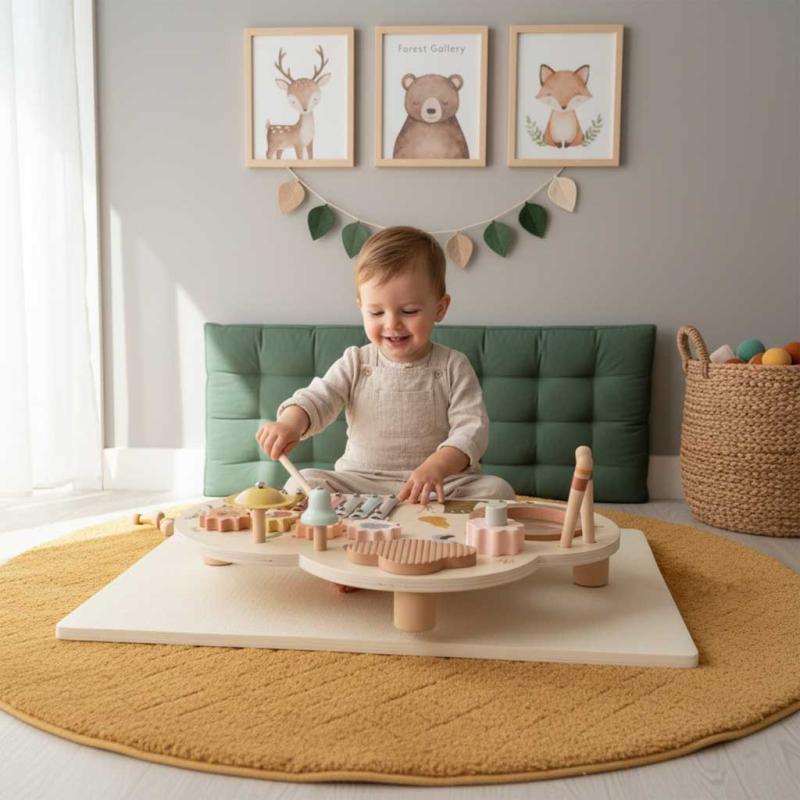 Drewniany stolik muzyczny to nie tylko przyjemność z zabawy, ale także wsparcie rozwoju dziecka przez zmysł słuchu, koordynację ruchową oraz logiczne myślenie. Solidna konstrukcja z naturalnego drewna zapewnia trwałość i bezpieczeństwo, a jednocześnie ekologiczny charakter produktu pozwala rodzicom czuć się komfortowo podczas użytkowania. Kolorowe ilustracje i pluralność instrumentów tworzą inspirujące środowisko do pierwszych muzycznych prób.