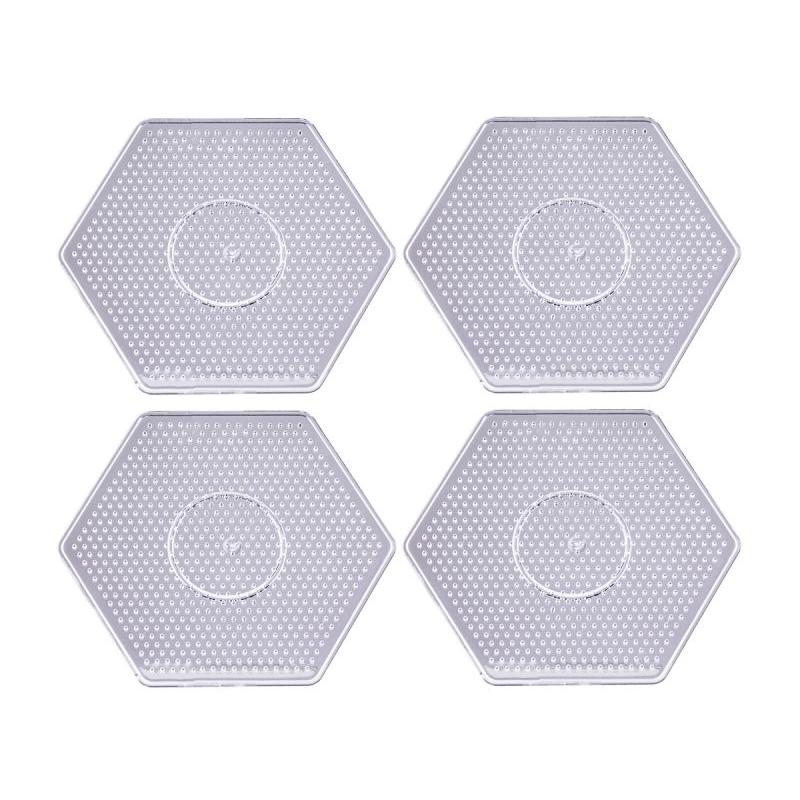 Szablon do prasowanek SZEŚCIOKĄT – Podstawka 4 sztuki to praktyczny zestaw podkładek, który ułatwia tworzenie poręcznych wzorów z koralików do prasowania; przyda się podczas zabaw plastycznych, porządkując miejsce pracy i skracając czas układania elementów. Dzięki czterem szablonom w kształcie sześciokąta jeden komplet wystarcza na dłuższe sesje twórcze lub na pracę jednocześnie kilku dzieci.