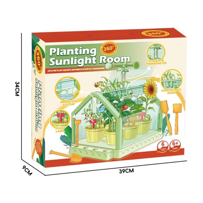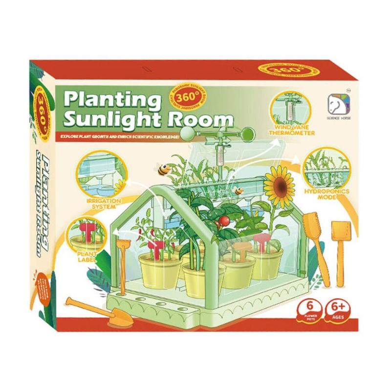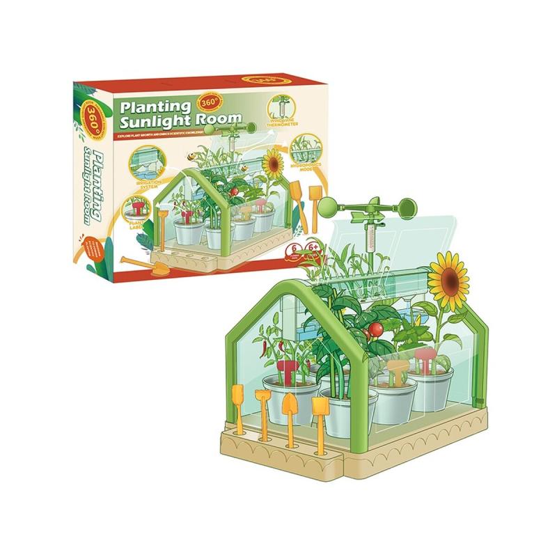 - Zawartość zestawu: mini szklarnia, element do nawadniania, 6 doniczek, wiatrak z termometrem, zestaw narzędzi ogrodniczych (łopatka, grabki, szpachelka, widelec), krążki z podłożem, pozostałe akcesoria, oryginalne opakowanie